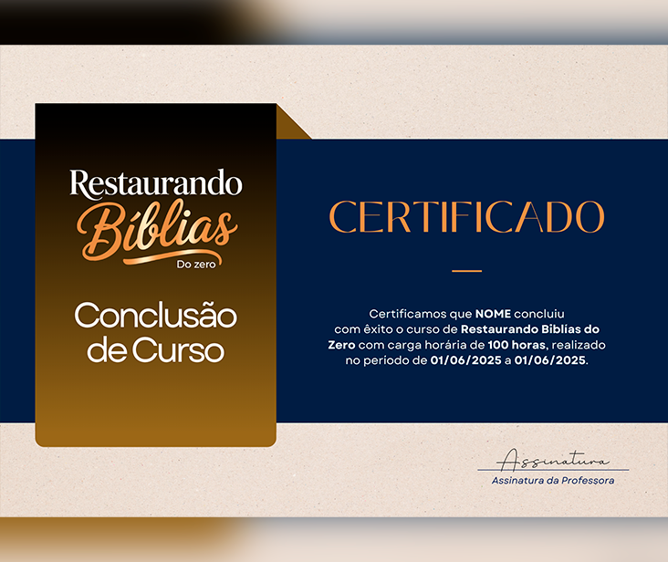 Em apenas alguns dias você já consegue restaurar sua primeira Bíblia, e transformar em fonte de renda sem precisar investir em materiais caros!